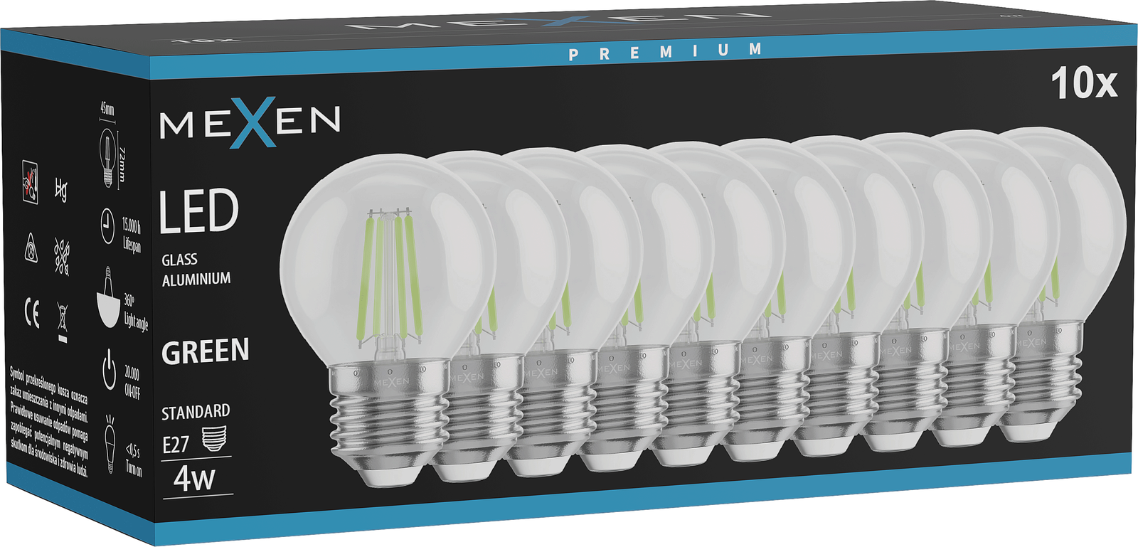 Mexen Vintis 10x LED Filament Bulb E27, G45, 4W, 55 lm, green - L156-E27-04XX-46x10