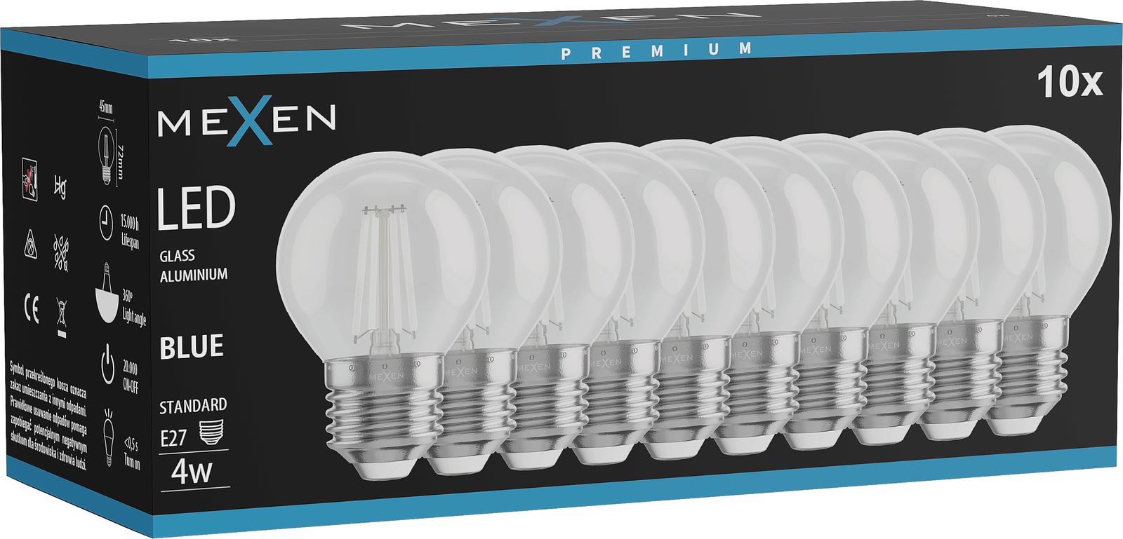 Mexen Vintis 10x LED Filament Bulb E27, G45, 4W, 55 lm, Blue - L156-E27-04XX-47x10