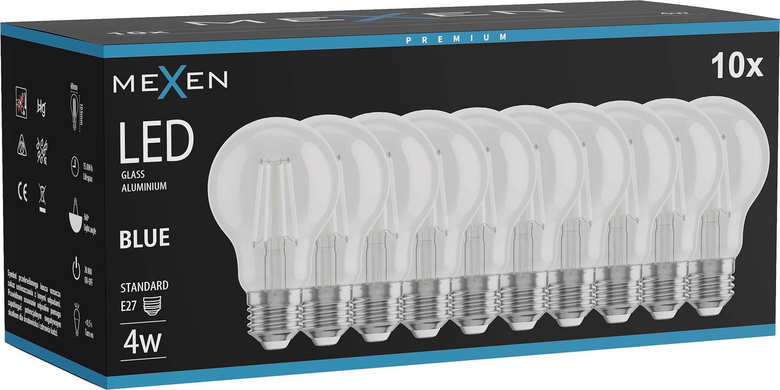 Mexen Vintis 10x LED Filament Bulb E27, A60, 4W, 55 lm, blue - L150-E27-04XX-47x10