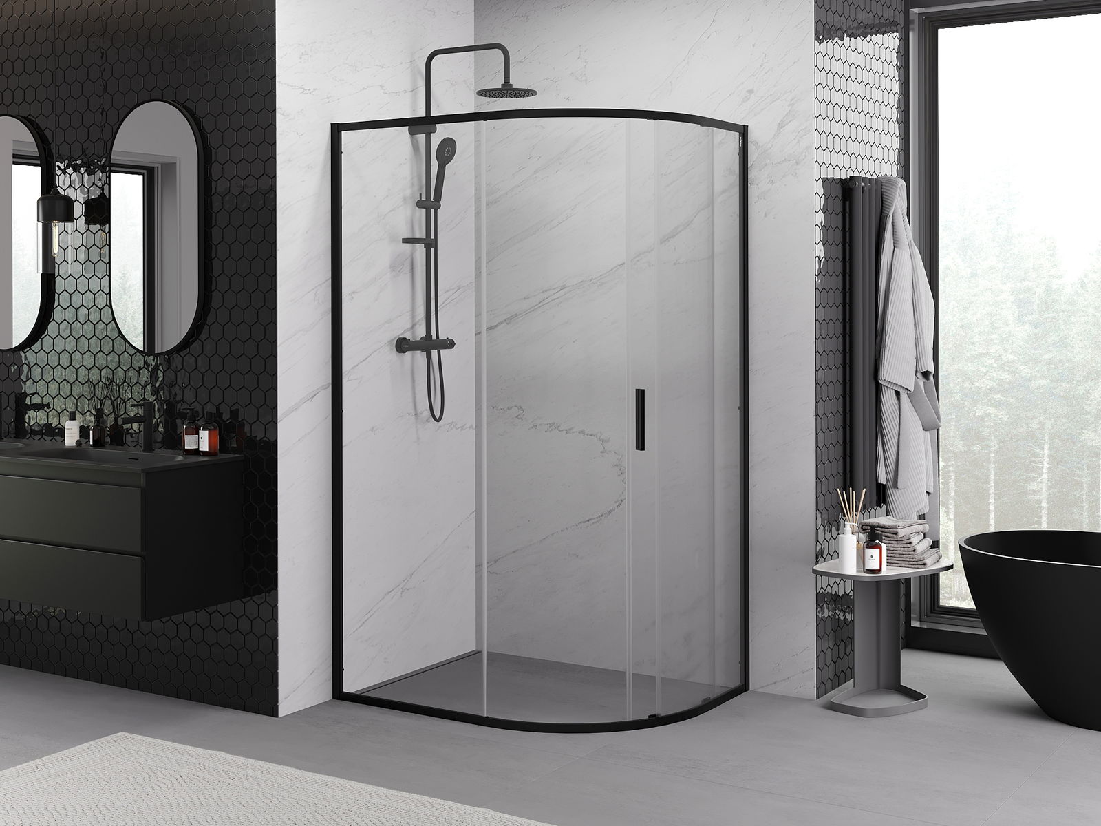 Mexen Exo asymmetric semi-circular sliding shower cabin 120 x 80 cm, transparent, black - 8131-120-080-70-00