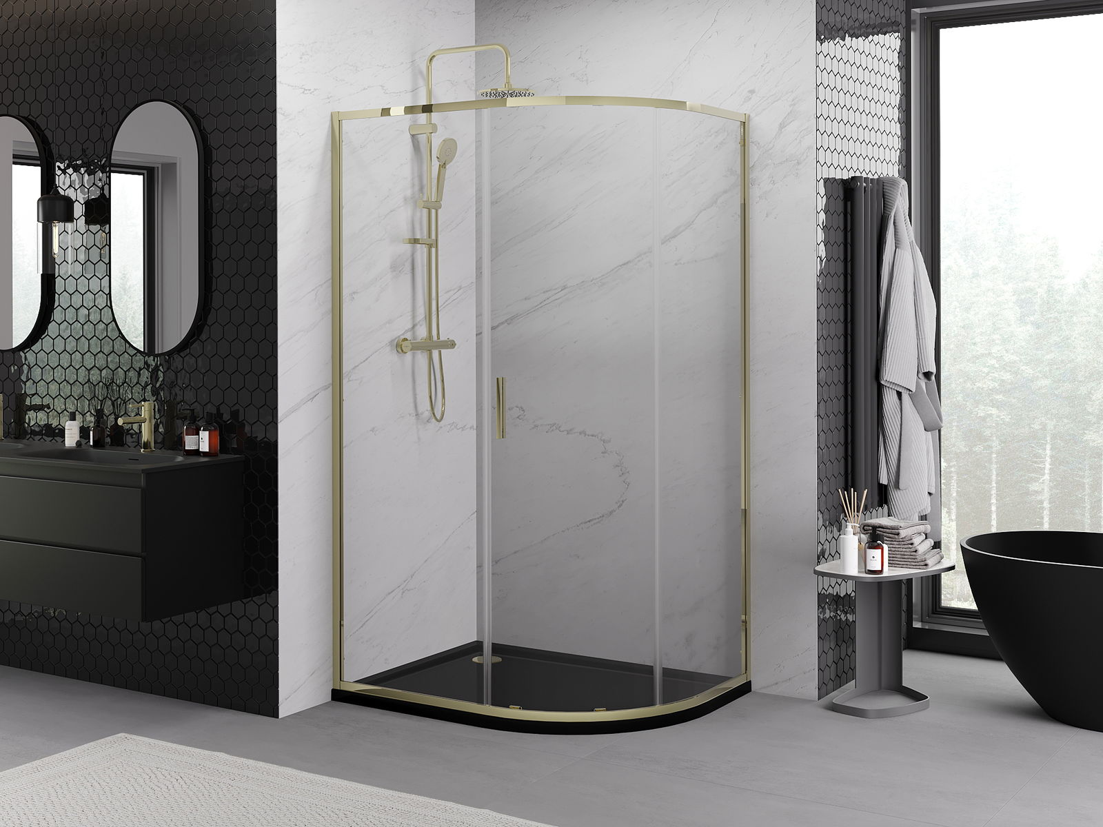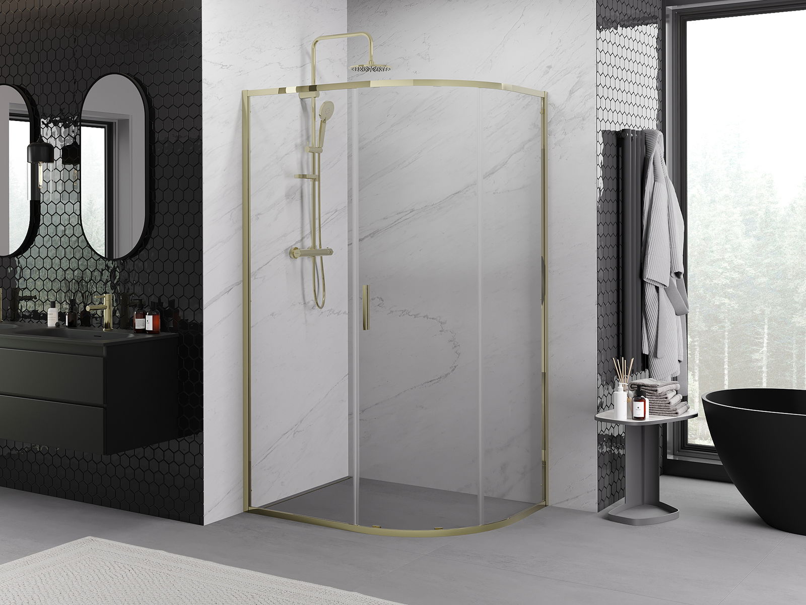 Mexen Exo asymmetric semi-circular sliding shower cabin 120 x 80 cm, transparent, gold - 8131-120-080-50-00