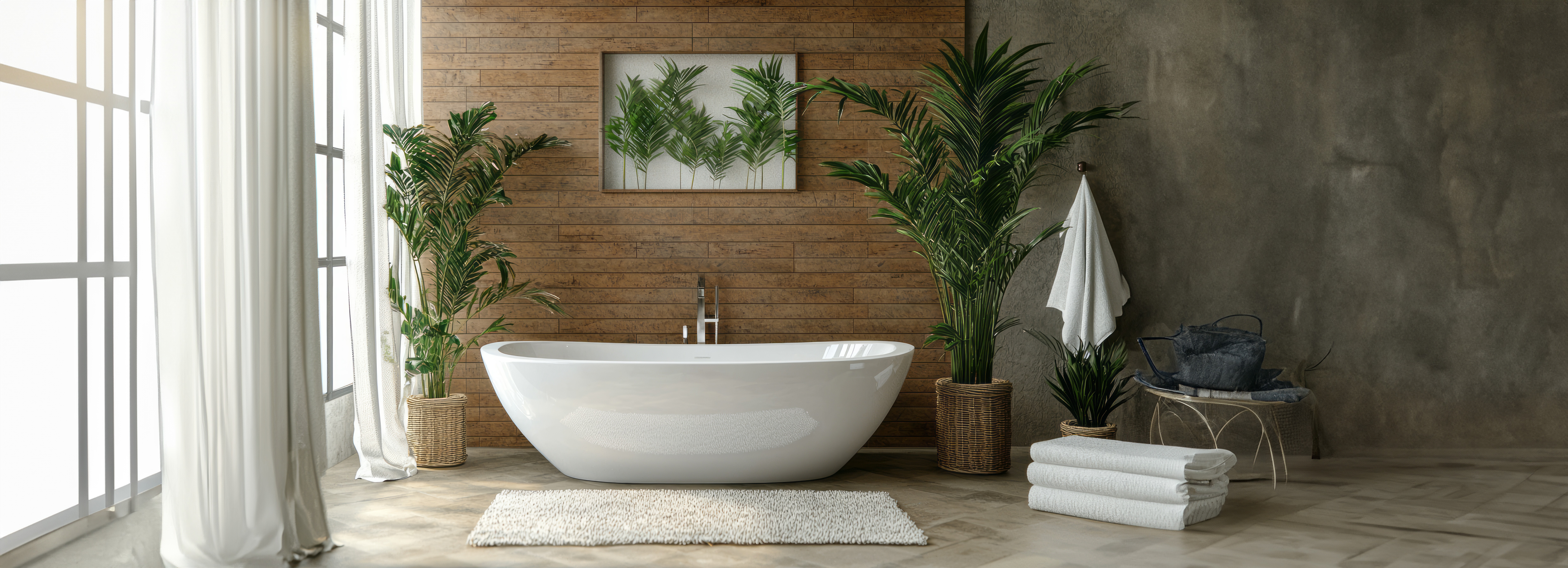 For some time, delicate shades referencing nature have been a strong trend in bathroom designs. It's worth focusing on earth tones, such as beiges, browns, and greens. Neutral colors are an important foundation for bathroom design. To achieve the best effect, it's worth enhancing the interior with live plants and accessories made from natural materials such as stone, bamboo, wicker.