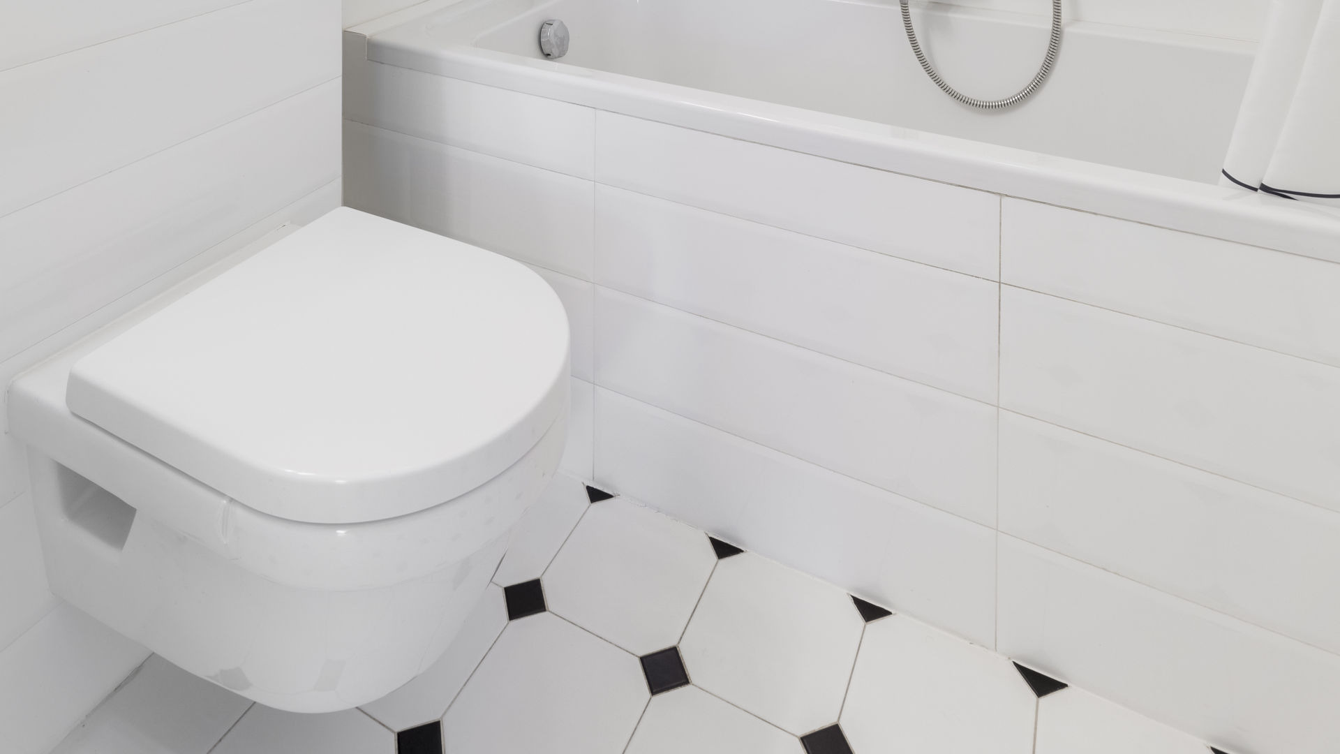 The wall-hung toilet bowl is a practical solution as it provides easy access to every part of the floor, making cleaning easier.
